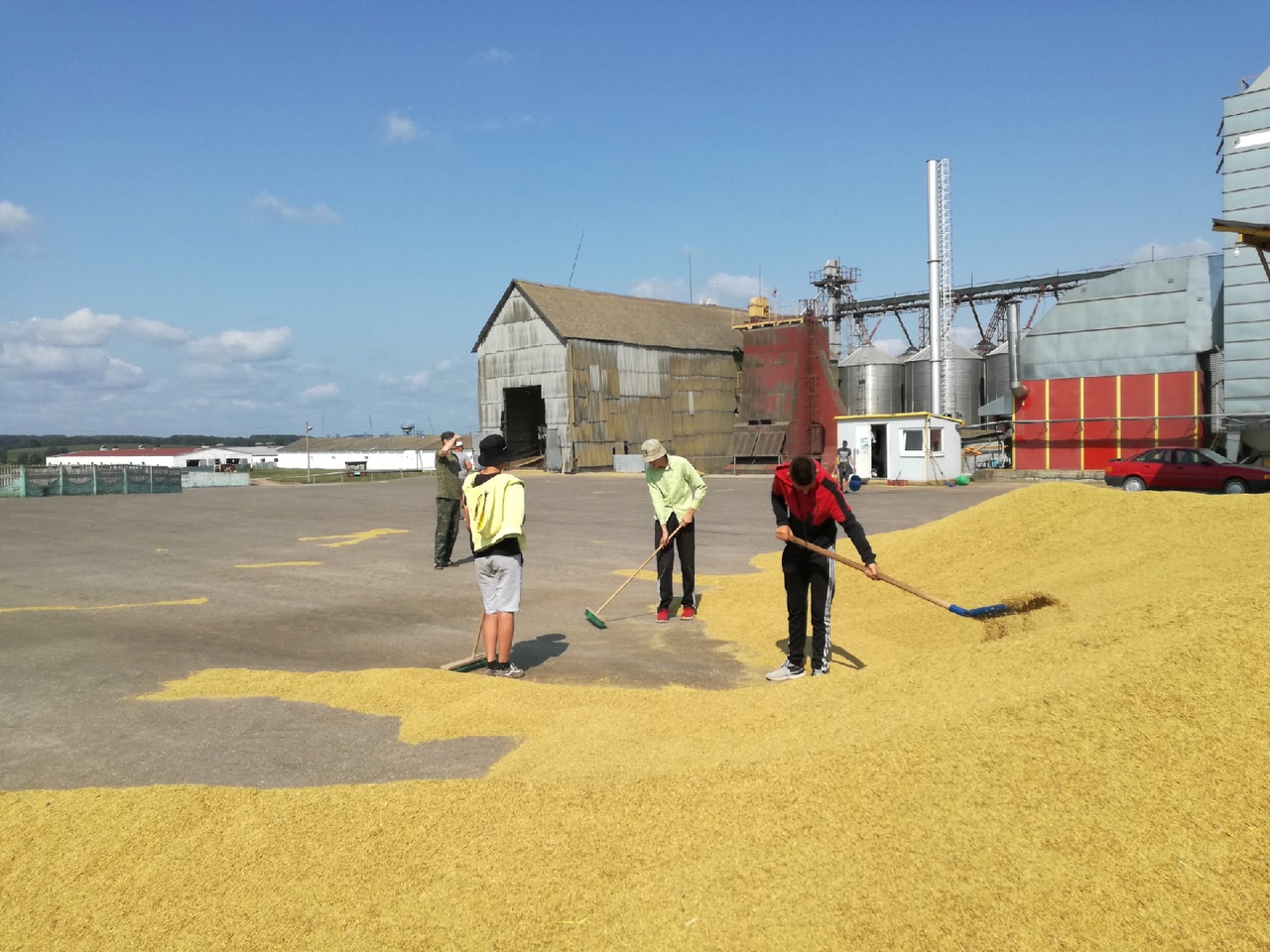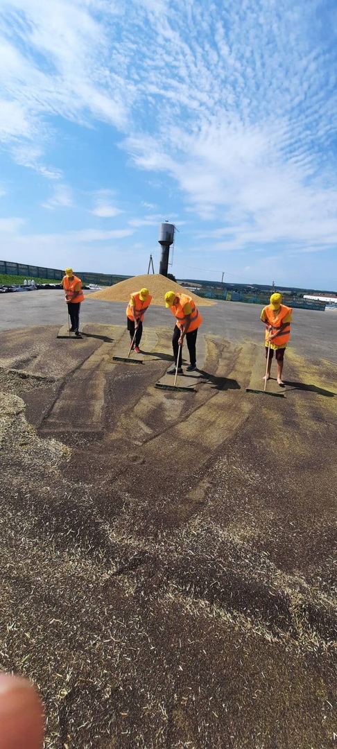 Миссия у ребят в горячую пору ответственная: дни напролет они трудятся на площадках зерносушильного комплекса, следя за сохранностью зерна и чистотой площадки.