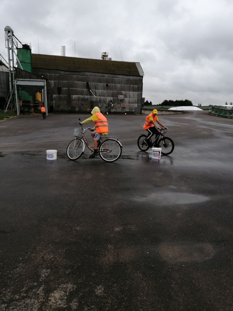 А чтобы ребятам веселее работалось , для них были организованы велосоревнования прямо на их рабочем месте!